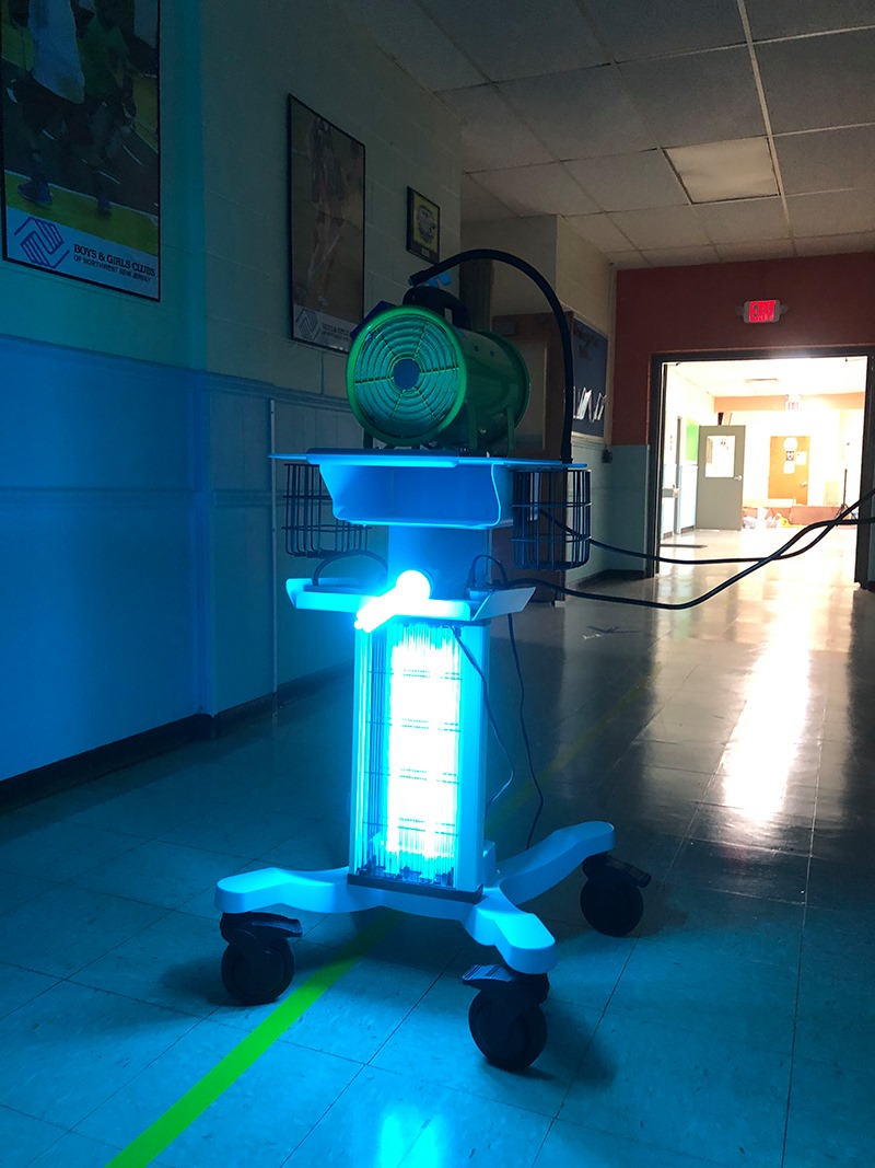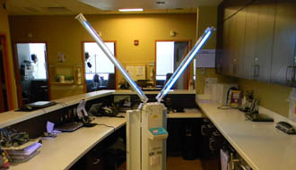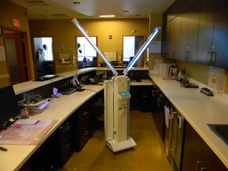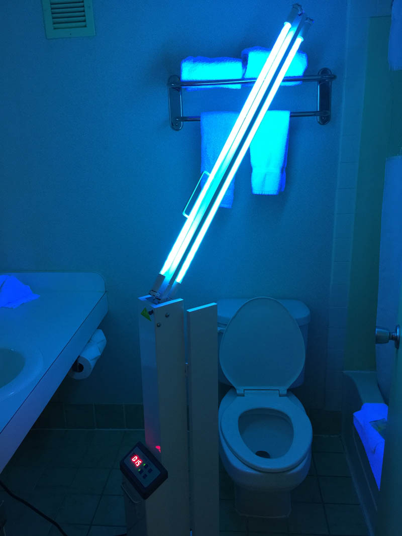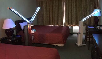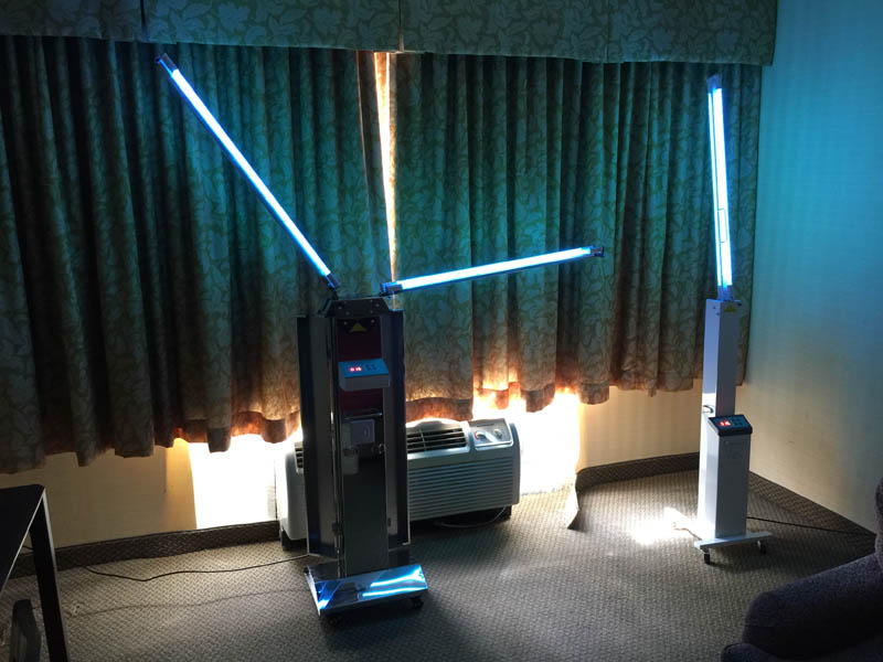 Perhaps the most innovative service we offer is a deployment of portable UV Light units to disinfect & sanitize any size of room or entire floor. This service is sometimes used as a standalone application but is more effectively used when combined with our HEPA Air Scrubber units and HEPA vacuums to effectively clean and prepare the area for UV deployment. The same cleaning technique is used on most of our environmental projects and it is based on daily (need to come basis), scheduled weekly, monthly or annual service contracts.